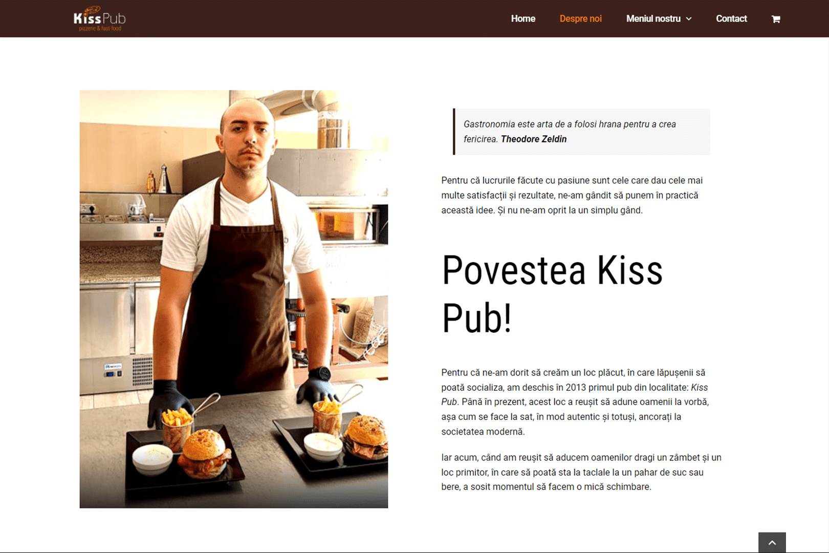 Am creat pentru tine acest website modern, kisspub.ro, cu un design unic și colorat, unde găsești informațiile ușor și de unde poți comanda tot ce îți dorești pentru a te bucura de adevăratul gust al mâncărurilor.