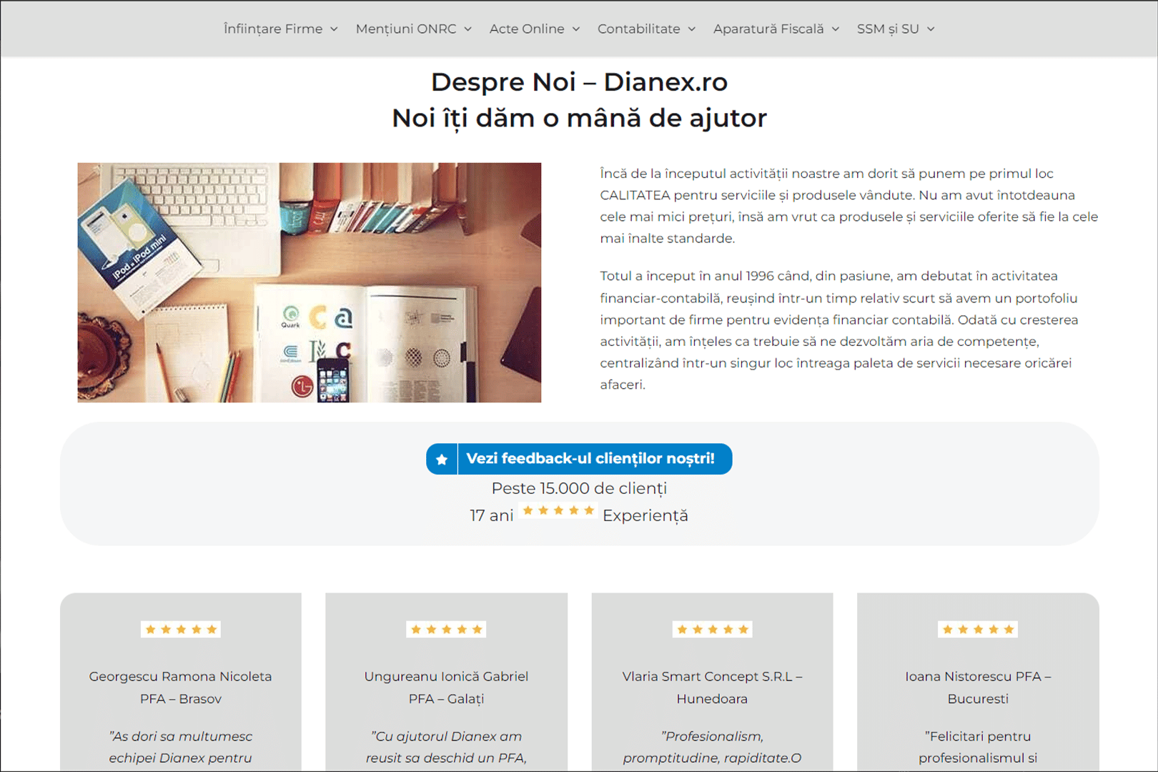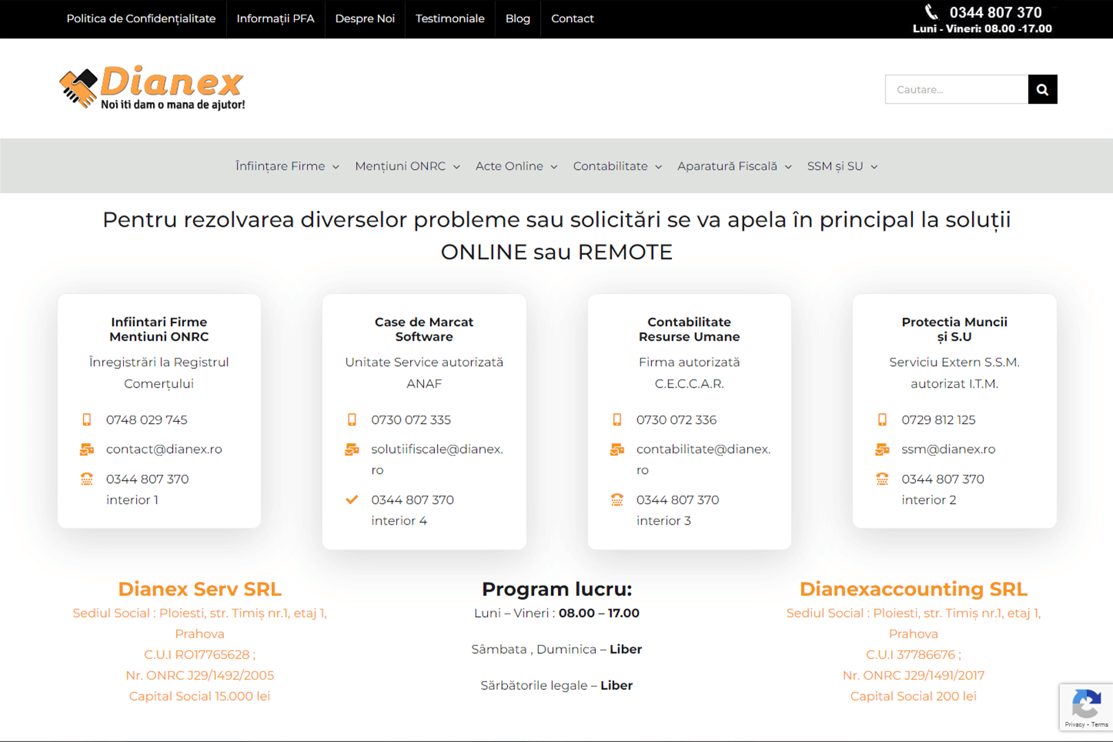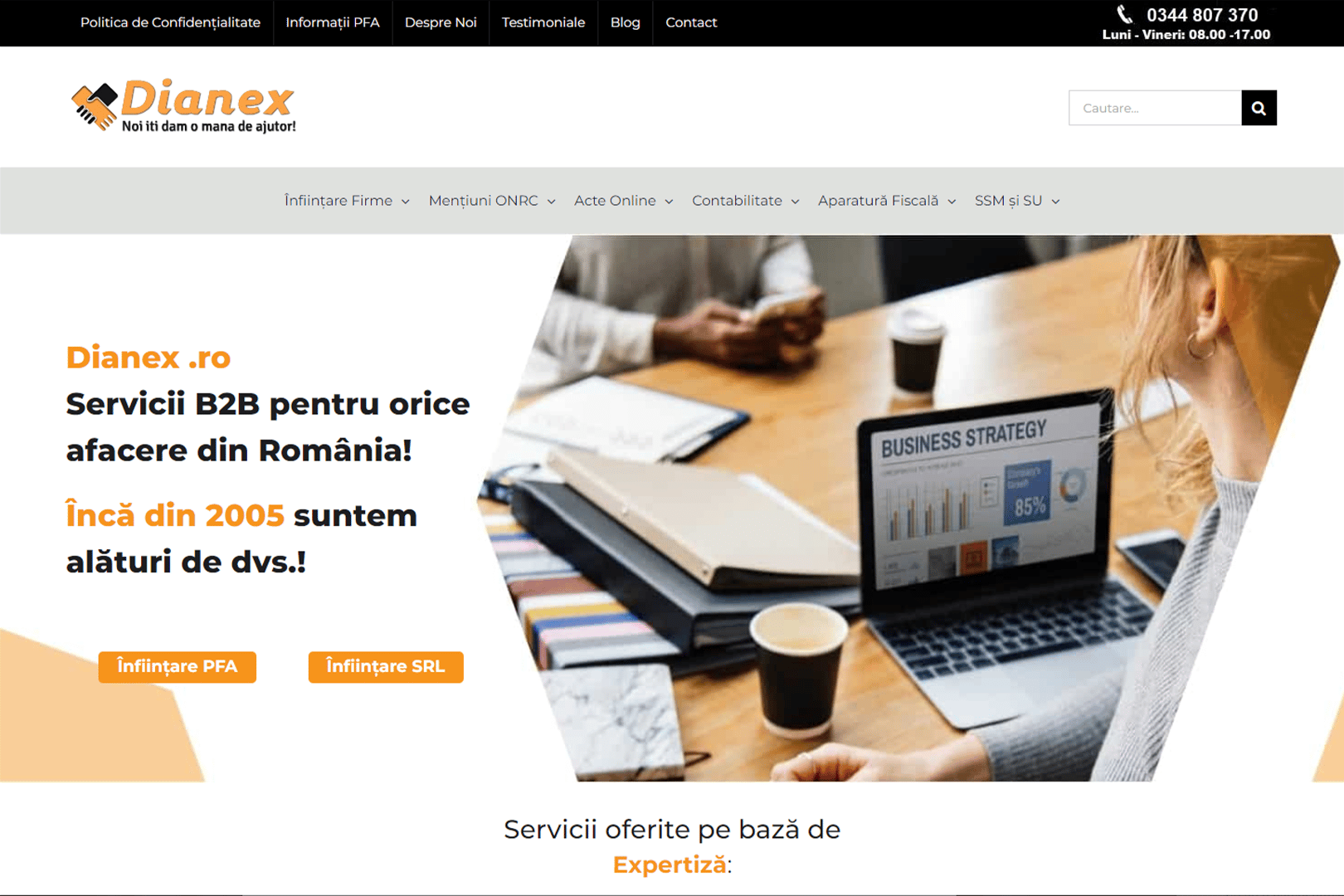 Î ți dorești și tu un site profesional și potrivit pentru afacerea ta? Contactează-ne! Client:Dianex Serv SRLWebsite: www.dianex.roCategorie:Site de prezentareData:17-05-2019Share Project: 59
